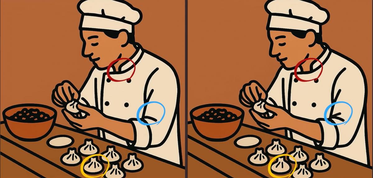 IQ test: najděte 3 rozdíly na obrázku šéfkuchaře za 31 sekund