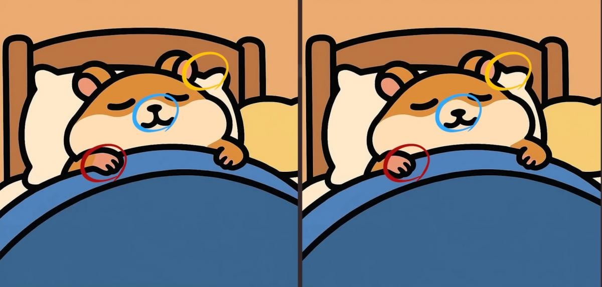 IQ test: najděte 3 rozdíly na obrázku spícího křečka za 29 sekund