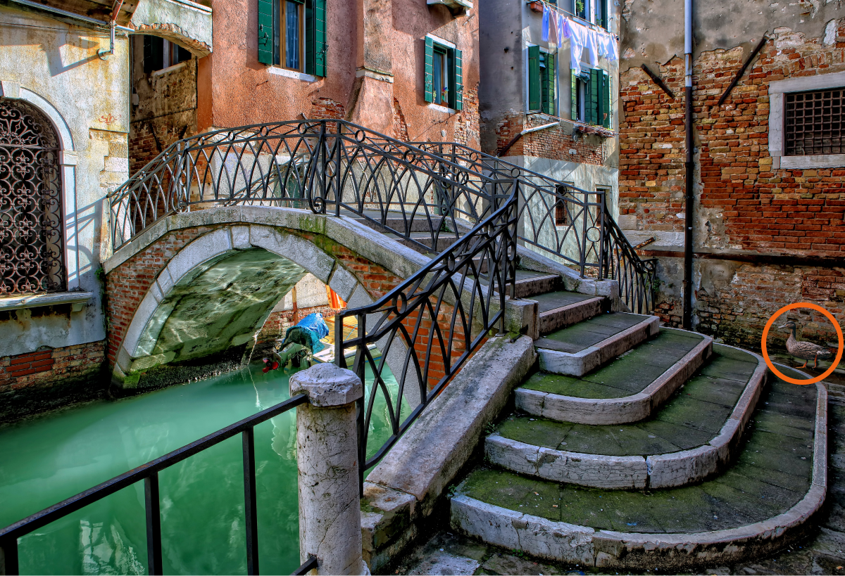 Potřebujete najít kachnu na obrázku za 10 sekund/ unsplash.com Pokud kachnu na obrázku nemůžete najít, máme pro vás malou nápovědu – pozorně se podívejte na oblast na konci schodů u pravého okraje obrázku.