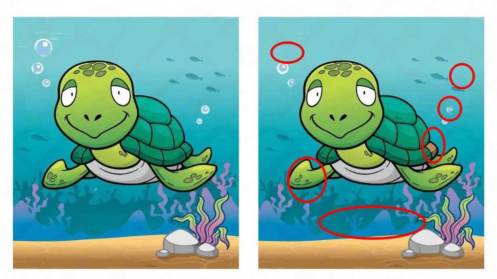Jaký je rozdíl mezi dvěma želvami: najděte 6 rozdílů do 15 sekund