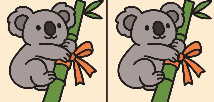 Tak co, jste připraveni na další výzvu? Podívejte se pozorně na dva obrázky koaly objímající bambus. Na první pohled mohou vypadat stejně, ale jsou mezi nimi tři malé rozdíly. Myslíte, že je všechny najdete za 33 sekund? Zkuste to a otestujte svou ostrost zraku!