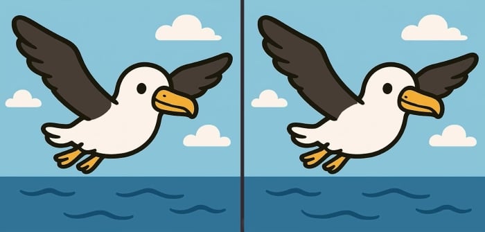 IQ test: najděte 3 rozdíly na obrázku letícího ptáka za 31 sekund