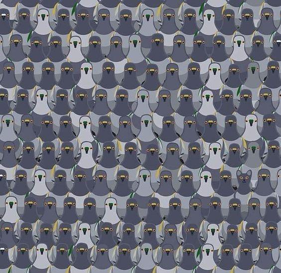 Máte tedy před sebou novou zajímavou hádanku. Vidíte na něm spoustu šedých a bílých holubů. Mezi ptáky na obrázku se však skrývá kočka. Zdá se, že kromě holubů na obrázku nikdo není, ale věřte, že tomu tak není. Váš mozek vás klame.