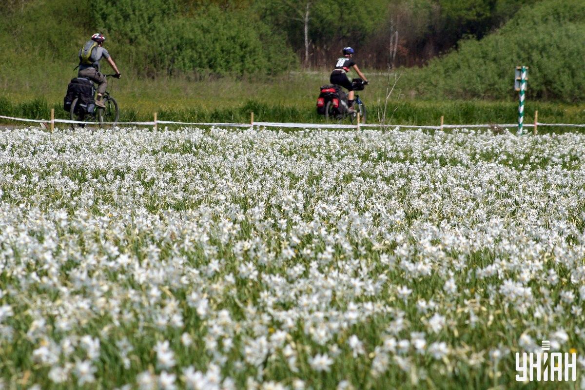 Na pestrobarevné fotografii parku je vidět obrovský květinový záhon, stromy a sportující lidé. Čápa na fotografii musíte najít za pouhých 9 sekund. To není snadný úkol, protože čáp je dobře ukrytý.